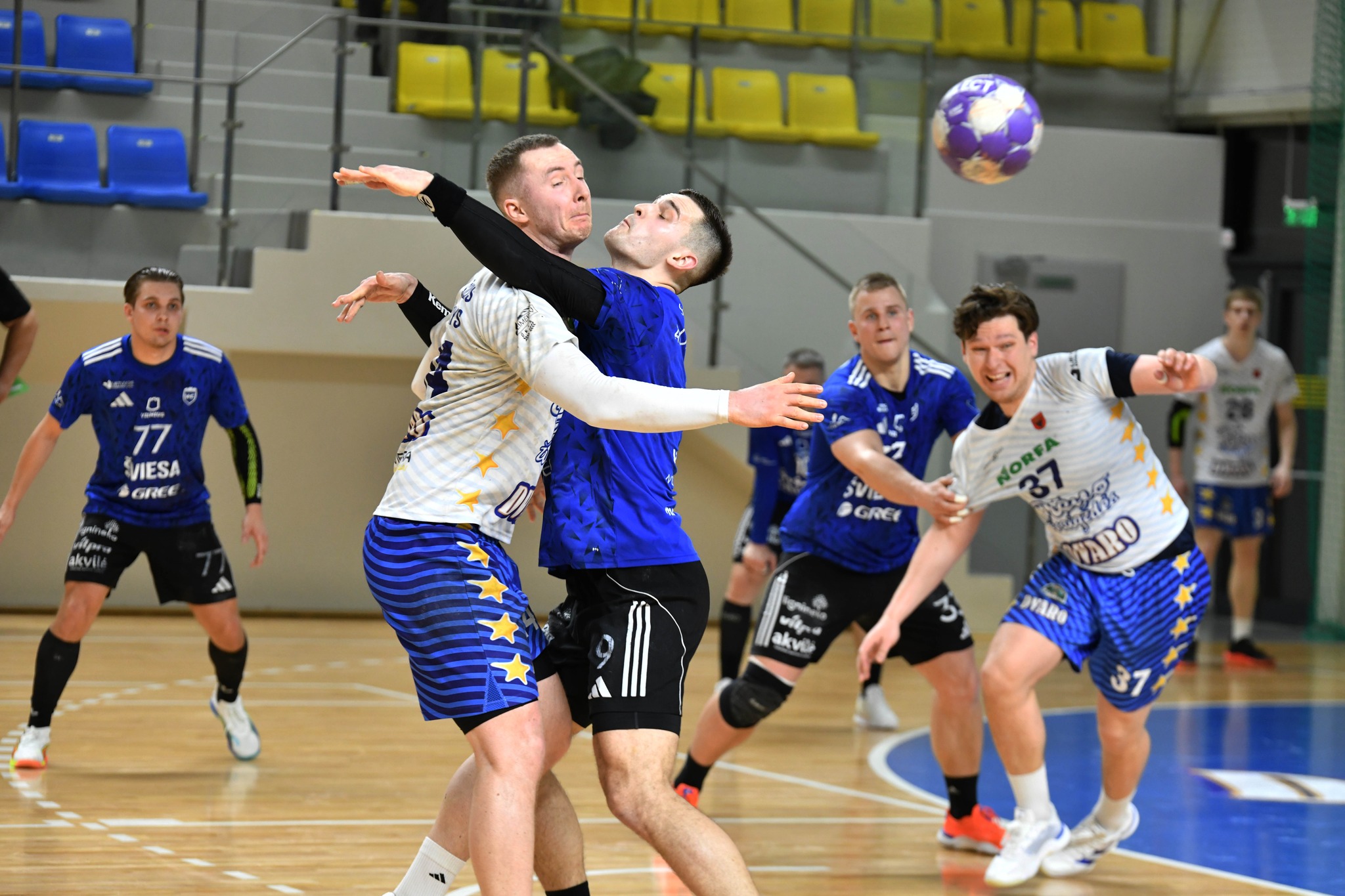 „Pieno žvaigždžių“ komandai Modestas Štarolis pelnė 8 įvarčius, Titas Janušonis ir ukrainietis Denysas Usinovas – po 6, Domantas Pukas į savo buvusios komandos vartus įmetė 5 įvarčius. Pasvalio ekipos vartininkas kazachas Ilja Pobočenko atrėmė 19 metimų iš 51-o (37 proc.).