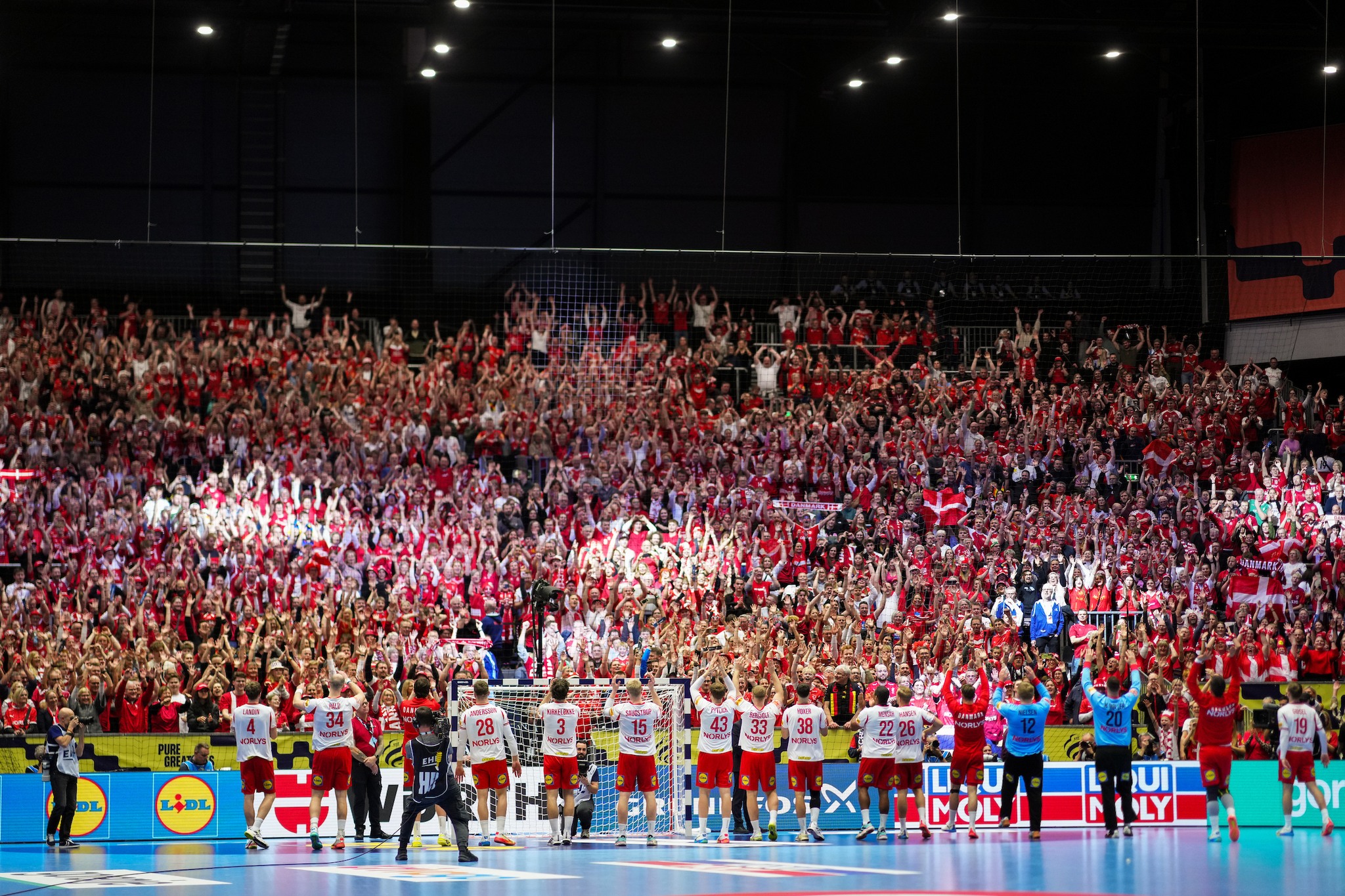 Dabartinė olimpinė ir pasaulio čempionė bei Europos vicečempionė Danijos rinktinė pirmoji užsitikrino vietą pusfinalyje. Antrajame etape Danijos rankininkai iškovojo visas keturias pergales ir surinkę 8 taškus, tapo I grupės nugalėtojais. Danams jau nieko nelėmusiame paskutiniame ture čempionato šeimininkai, Herninge palaikomi net 15 tūkst. sirgalių, 38:24 sutriuškino norvegus.