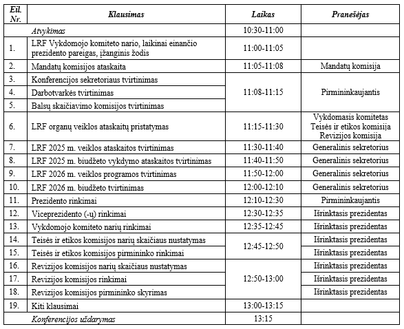 LRF Konferencijos darbotvarkės projektas: