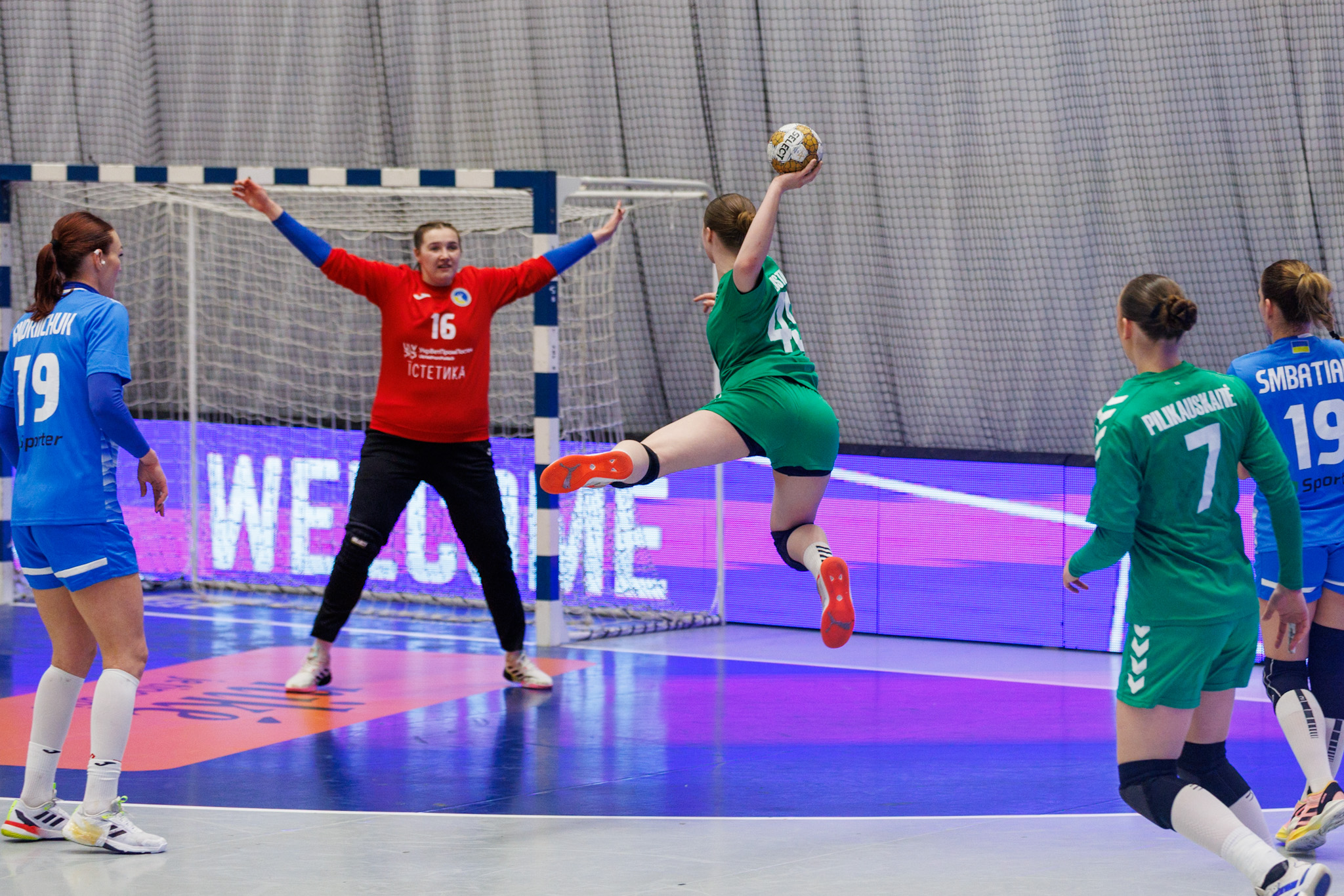 Susitikime su ukrainietėmis, Lietuvos rinktinės treneris Herlanderis Silva į startinę sudėtį išleido vartininkę Evitą Žilionytę bei aikštės žaidėjas Aušrą Arciševskają, Gerdą Kairytę, Ritą Rakauskienę, Gabiją Pilikauskaitę, Dominyką Andronik ir jauniausią rinktinės rankininkę 15-metę Altėją Ustilaitę.